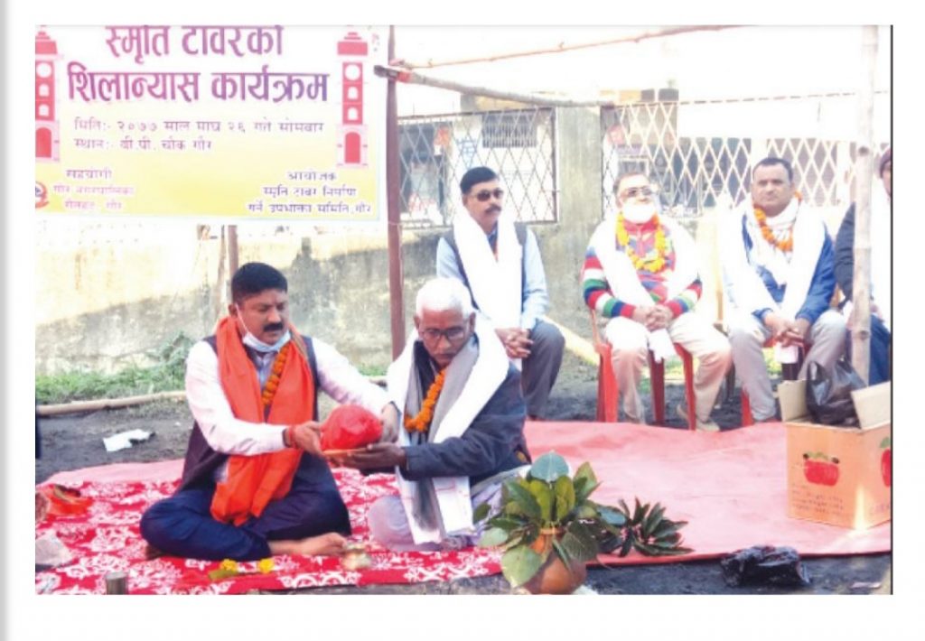 नगरपालिकाको ९५ लाखको लागतमा गौर स्थित मधेशी क्रान्ति चोकमा निर्माण हुने स्मृति टावरको बिहिवार शिलान्यास भएको हो ।