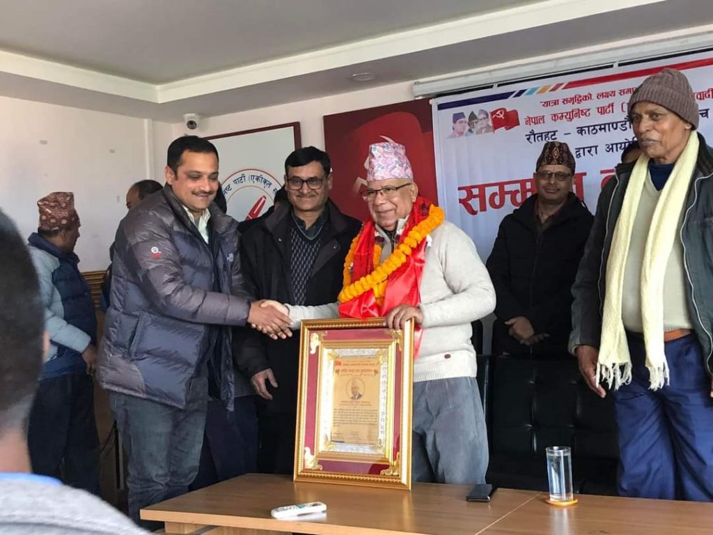 पुर्व प्रधानमन्त्री एवं नेपाल कम्युनिष्ट पार्टी (एकीकृत समाजवादी) का अध्यक्ष माधव कुमार नेपाल तथा प्रदेशसभामा बिजयी कनिष पटेल र प्रदेशसभा समानुपातिक बाट निर्वाचित किशोरी देवी दासलाई बधाई तथा सम्मान कार्यक्रम सम्पन्न गरेको छ ।