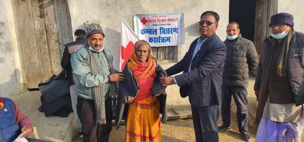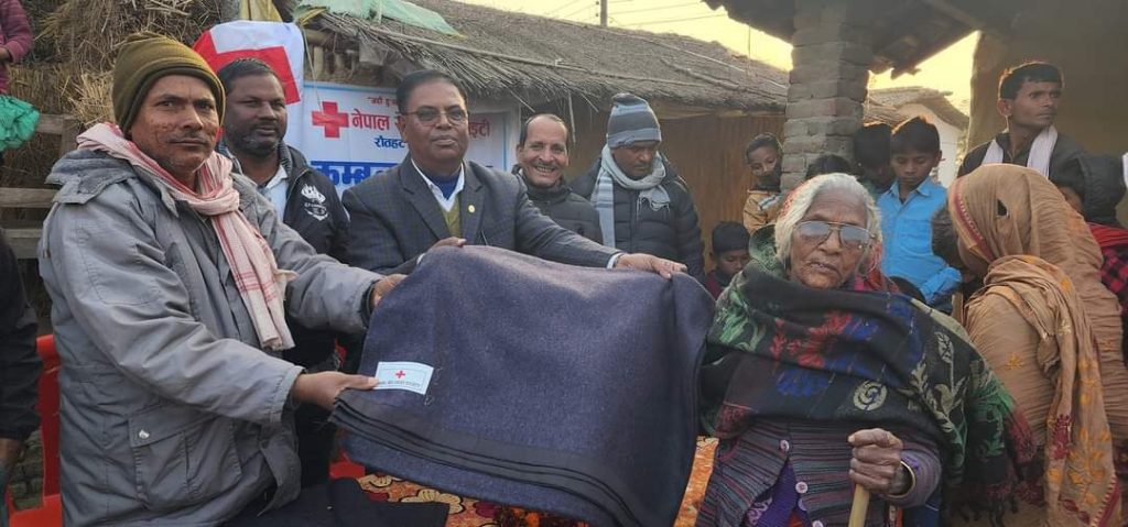 जेष्ठ नागरिकहरुको पहिचान गरी घर/घर गएर उनीहरुलाई कम्बल वितरण गरेको नेपाल रेडकास सोसाइटी रौतहट शाखाले जनाएको छ।