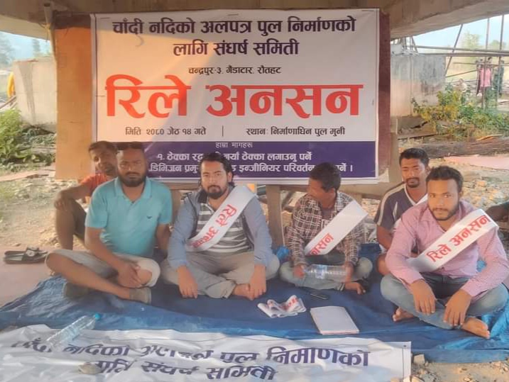 तीन बर्षम सक्नुपर्ने काम सडक डिभिजन कार्यालय चन्द्रनिगाहपुरका कर्मचारीका कारण सात बर्षमा पनि अधुरो रहेको भन्दै स्थानीयले निर्माणाधिन पुलको मुनी चार दिन देखी रिले अनशनमा छन ।