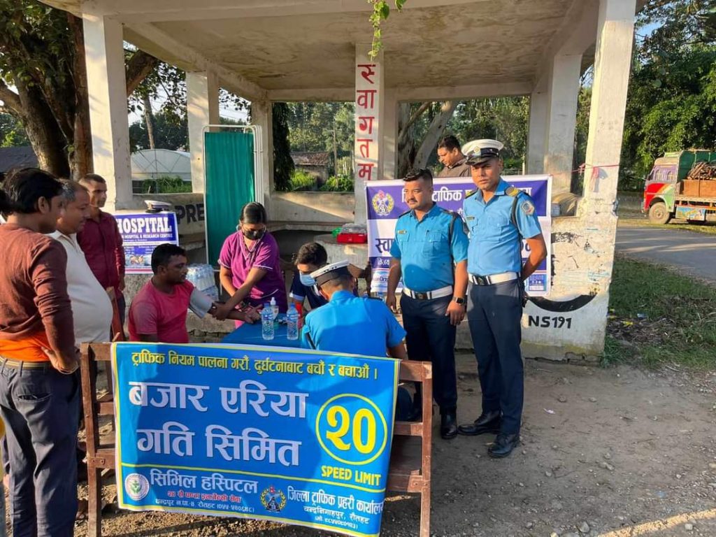 रौतहट १ कर्तिक / ट्राफिक प्रहरी संगको समन्वयमा सिभिल अस्पताल चन्द्रपुरले चालकहरुको प्राथमिक स्वस्थ्य परिक्षण गरिएको छ ।