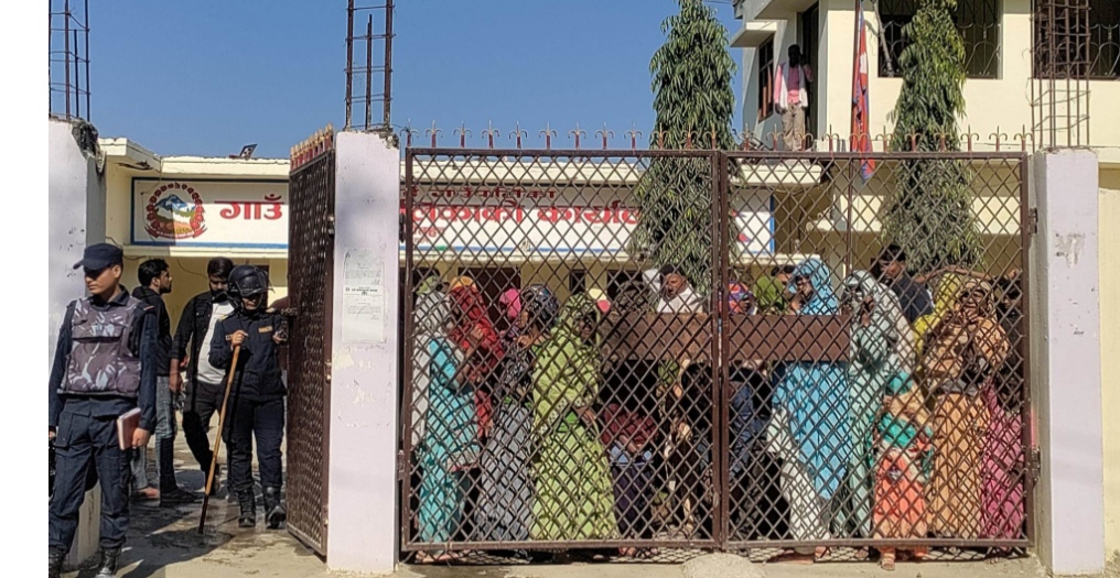 हाजिर गर्न नदिने भन्दै स्थानीय ले गाउँपालिका प्रवेशद्वारमा जम्मा भएर बिरोध जनाएका थिए ।