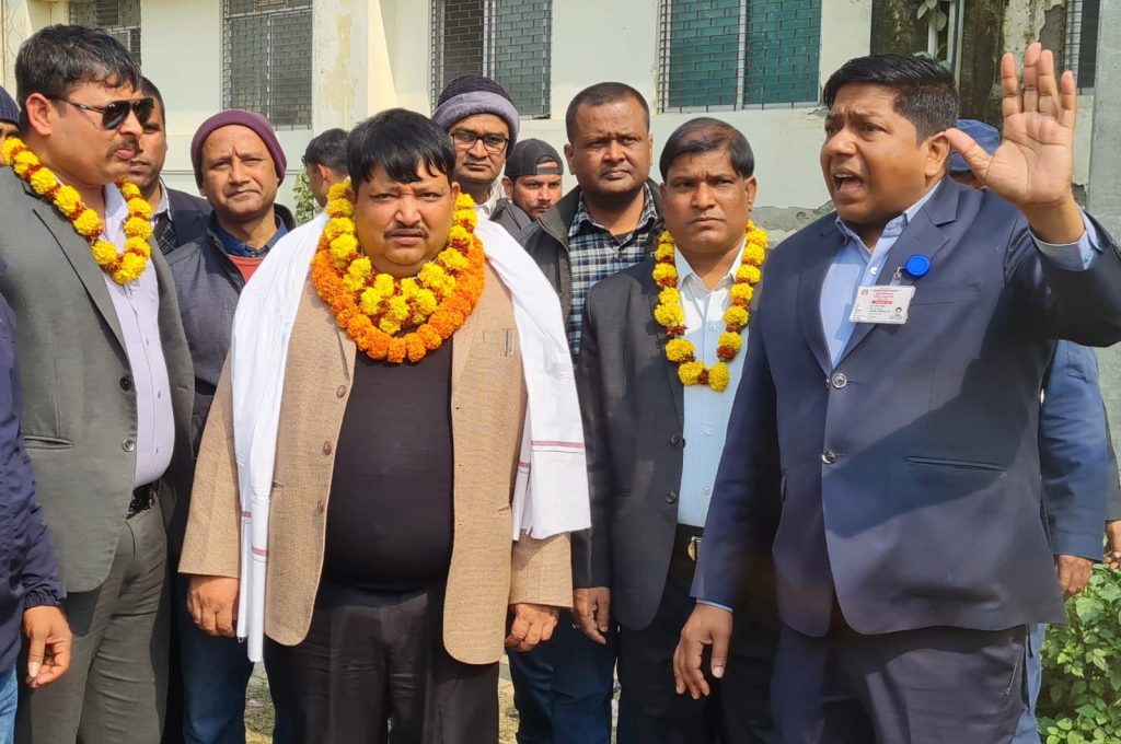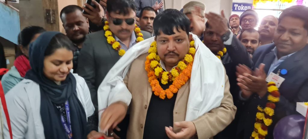 अस्पताल अगाडि अस्पताल ब्यबस्थापन समितिको अध्यक्ष, र अस्पतालका निमित्त मेडिकल सुपरिटेन्डेन्ट डा. मुरारी ठाकुर सहित विभिन्न कर्मचारी माला खादा लिएर उभिएका थिए।
