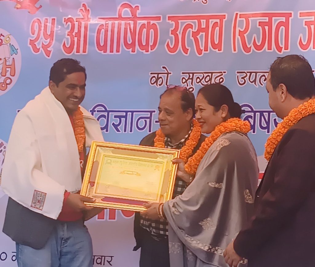 नमुना अग्रेजी आ.बि. चन्द्रपुर ५ को २५ औं बार्षिक उत्सव ( रजत जयन्ती) अवसरमा रौतहट जिल्लामा रहेर २ दशक देखि शिक्षा पत्रकारीताको क्षेत्रमा योगदान गरे वापत रेडियो सुप्रिमका अध्यक्ष तथा अन्नपुर्ण पोष्ट दैनिकका रौतहट समाचार दाता फणि महत सम्मानित भएका हुन ।