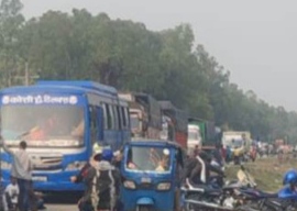 स्थानीयले राजमार्गमा टायर बालेर सडक बन्द गर्दा ठूलो संख्यामा सवारीहरु बाटोमै रोकिएका थिए ।