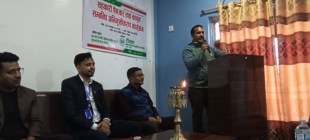 रौतहट १८ फागुन ।सहकारी ऐन, कर तथा कानुन सम्बन्धि २ दिने अभिमुखीकरण कार्यक्रम शुक्रवार बाट चन्द्रपुरमा शुरु भएको छ ।